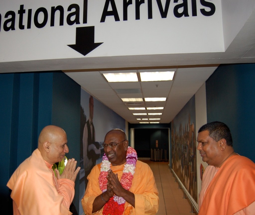 His Holiness Sri Swami Sarvarupanandaji Maharaj, the Head of our Sri Lanka Ramakrishna Mission arrived in Durban today. He was visibly joyful in paying a 10 day visit to this Rainbow nation where in many places he will participate in the 156th Birth Anniversary celebrations of Holy Mother Sri Sarada Devi. He was warmly welcomed at the airport by Swamis Brahmarupanandaji, Saradaprabhanandaji, self and Chairperson Ramesh Ishwarlaal with some senior officials of the Centre. I cannot but remember Revered Sarvarupanandaji’s amiable nature when he was part of a team of monks who came to Seva Pratishthan to assist the Administrator-monks during service dislocation for a short period. He could carry every one with him by his jovial and pleasant behaviour.