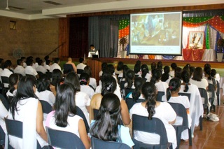 Following this deeply touching Talk, the youth were treated to a DVD presentation. It was part one of a four-part ‘Message to the Youth’, delivered by Sri Swami Bodhamayanandaji Maharaj, a youth monk of the Ramakrishna Order, now in Chennai Centre. Maharaj’s words were like gold, and the youth were simply hanging on to his every syllable. Maharaj addressed various issues and problems affecting the youth in modern times. Methods and techniques for overcoming these problems were alluded to. He used copious teachings of the Holy Trinity, especially that of Swami Vivekananda, as he guided the youth with his powerful voice and charged words.