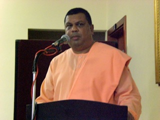 At approximately 08:30 we arrived at Headquarters. The sight of the majestic Ashram was overwhelming. After being warmly received by the devotees at Headquarters we proceeded to the shrine to offer our pranams to Master, Mother and Swami Vivekananda. We were then briefed in the day’s proceedings and subsequently moved to the Swami Nischalananda Hall where we were served a light, yet refreshing, breakfast. Our Revered President Maharaj, His Holiness, Sri Swami Vimokshanandaji Maharaj, addressed us, both welcoming and blessing all the Devotees. In his short address (because of his prior appointment at Chatsworth Sub-centre), he pointed out the utter usefulness of studying Ramakrishna-Vivekananda literature everyday. He added that by such studies, the ever-lasting ideas that the Holy Trio gave out for the world, would slowly sink into our mind and would be conducive for our spiritual sadhana.