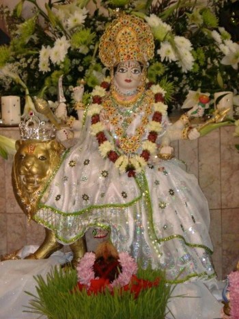 Besides Headquarters, the Sub-centres at Chatsworth and Pietermaritzburg in Southern Natal, had clay images of Mother Durga. Sri Sarada Devi Ashram at Asherville had also such a murti. All these four murtis are designed to be of ashtabhuja (eight-armed) and simha-vahini (riding the lion). There is no ubiquitous demon King Mahishaasur! Recently I heard from brother Swami Saradaprabhanandaji that his Guru and the Second president of the Ramakrishna Centre of SA, Swami Shivapadanandaji wanted to popularise the benign form of Mother Durga among the devotees.