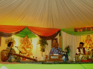 Anil Ishwarlall Bridglall of Divine Life Society and his wife Gayatri’s melodious rendition of Sri Ram’s home-coming as described in Sri Ramcharitmanas was most spiritually elevating. He sings as it were with his soul poured into it! Changing tunes to different passages from the scripture made me feel the scenes from Ramayana were getting re-enacted before my closed eyes. Nitin Soni’s support on tabla was splendid. When my turn to give my Talks came and I had not even finished my opening words, there was an uproarious welcome to me by – guess whom? Lightning and thunder! and a downpour that made me stand still for a few minutes! Recovering from the Nature’s fireworks, I continued my Talks and stressed on three points:
