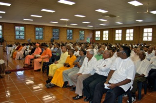 Another feature I spoke in praise of was the spirit behind the present grand achievement. Though being a minuscule minority, the presence of Indians is palpably felt in all walks of life such as Law, Medicine, Education, Engineering and the ubiquitous IT. Marked economic advancement makes us feel proud of our progress. In this connection, I recalled the caution that Swami Vivekananda gave to his countrymen – that ‘neglect of masses’ is the foremost reason for the downfall of India. I added that concerted efforts must be co-ordinated by the Hindu community. They should disperse all possible resources in caring and sharing for the multitude living in the densely populated areas. Otherwise it would definitely be a cause for deep concern.