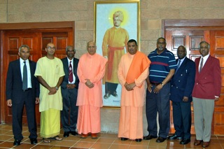 from L to R: Ramesh Ishwarlall, Shivaprem, Bala Natesan, Swami Vimokshananda, Swami Saradaprabhananda, Dr JV Viranna, T Murugan, R Bindapersad