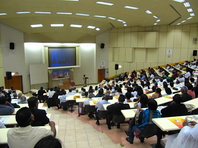 After each talk, there was a short question and answer segment, which drew brilliant answers from the panel of speakers to the various interesting questions from the audience. There were also some abiding comments and observations from the audience. At the end of the Conference, the speakers were presented with tokens of appreciation by devotees of SSDA. Sister Avinta brought the Conference to a close with her mellifluous shanti paath recital before all proceeded to the foyer where a sumptuous lunch was served.
