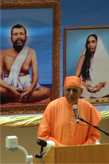 Swami Vimokshananda delivering a speech interspersed with humour…