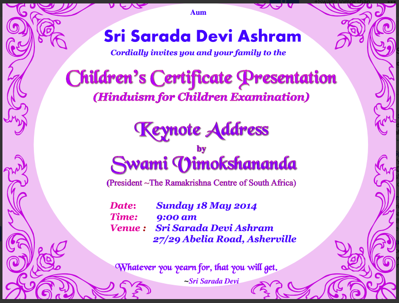 Hinduism for Children at SSDA