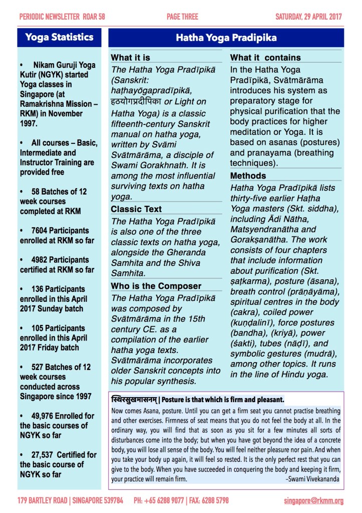 Roar 58 gives details of Yoga Training lessons, conducted by Nikam Guruji Yoga Kutir at our Mission campus on Fridays and Sundays. The Sunday batch was the 59th…