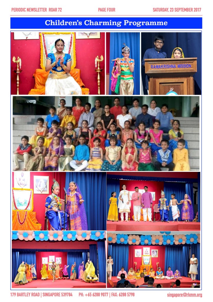 Roar 72 describes the two major functions – one Sri Krishna Janmashtami held on 14 August 2017 and another – a sequel to this function. The latter one was a Cultural programme where Children from the Hinduism classes participated…