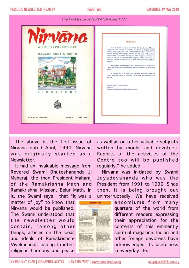 Once again, I have been invited to join the Management Board of which I could no longer refuse. Swami Sumanasananda informed us a few weeks ago at Satsang that You will be leaving to Head the newly acquired Ashrama in Dublin. It is with both sadness and somewhat joy that you have been posted to so distant a place. It has taken me a while to digest this news and have now accepted that the Lord knows what is best for all of us.